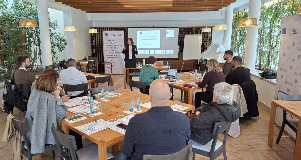 Uz tehničku asistenciju projekta EU4CS koji se finansira sredstvima Delegacije Evropske unije, Ministarstvo za evropske integracije i međunarodnu saradnju Vlade Republike Srpske realizovalo je dvodnevni trening za organizacije civilnog društva (OCD) i javne službenike u Trebinju 12-13/02/2026 s ciljem izgradnje kapaciteta OCD i državnih službenika za kreiranje politika vezanih za saradnju sa civilnim društvom u različitim tematskim oblastima.