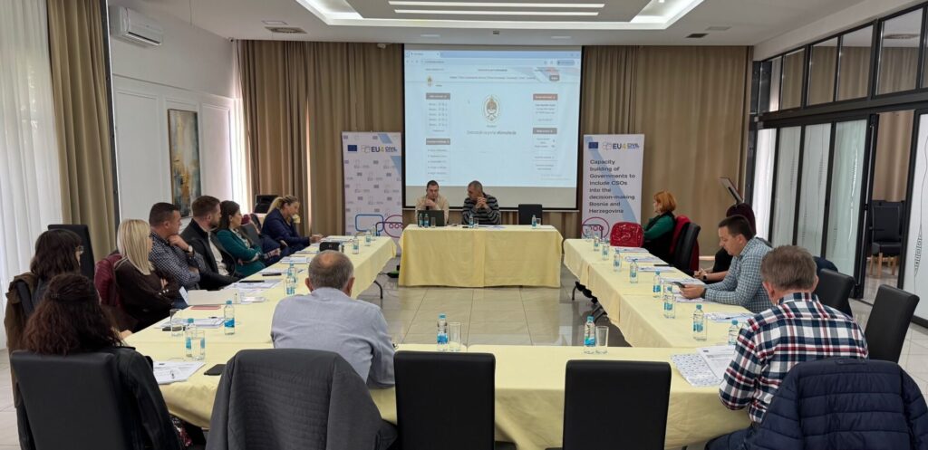 U cilju jačanja informisanosti kao i spremnosti OCD i drugih aktera da koriste ’E-konsultacije’ kao institucionalni mehanizam za saradnju sa institucijama RS, i da se time uključe u procese kreiranja pravnih akata, uz tehničku podršku projekta EU4CS u Bijeljini je 15/10/2025 održana prezentacija platforme E-konsultacije. Tokom prezentacije, prisutni predstavnici civilnog društva i socijalnih partnera imali su priliku od predstavnika Republičkog sekretarijata za zakonodavstvo čuti detaljnije informacije u principima rada E-konsultacija kao i načinima njenog korištenja u smislu registracije kao i dostavljanja svojih komentara na nacrte pravnih akata koje će biti objavljeni na E-konsultacijama.